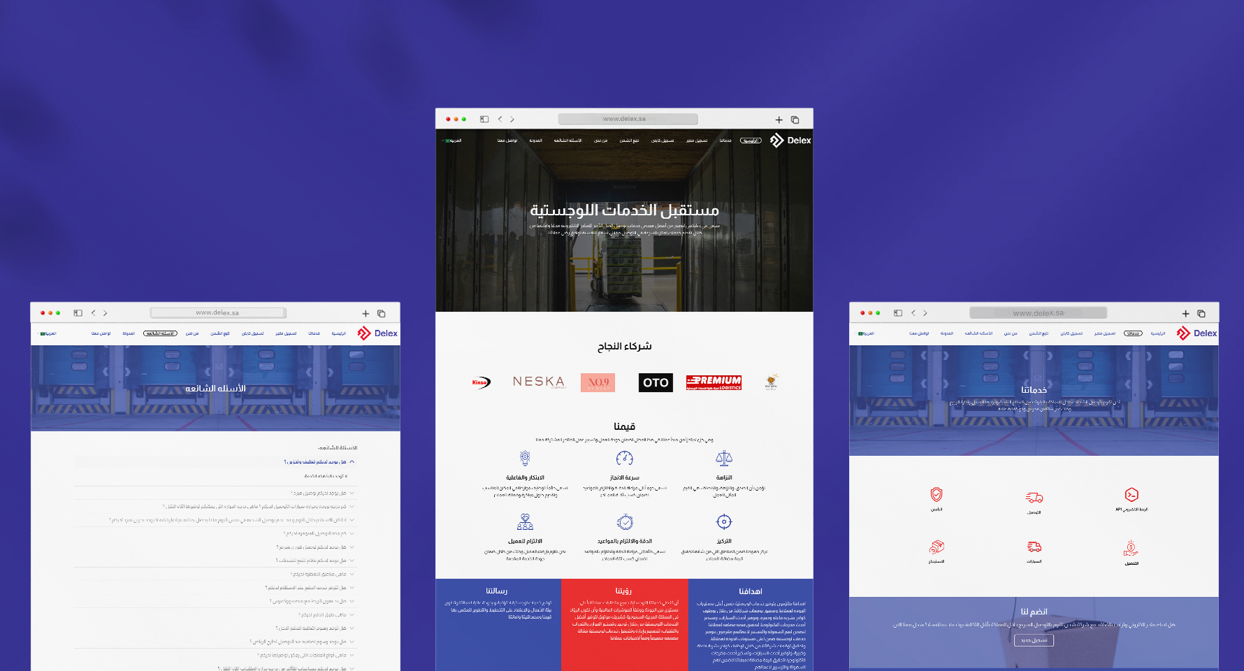 تعاونّا مع شركة Delex، وهي شركة لوجستية مقرها الرياض، متخصصة في تقديم حلول التوصيل والخدمات اللوجستية المتكاملة لقطاع التجارة الإلكترونية والشركات داخل المملكة العربية السعودية. كان الهدف هو إنشاء موقع احترافي يعكس قوة الشركة التشغيلية ويسهّل التواصل مع العملاء والشركاء.