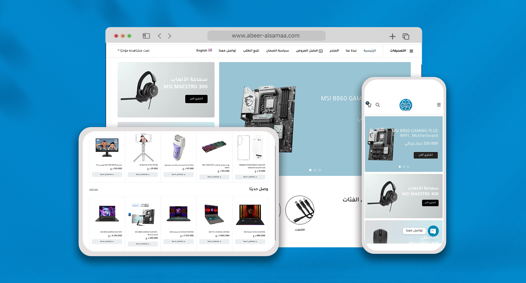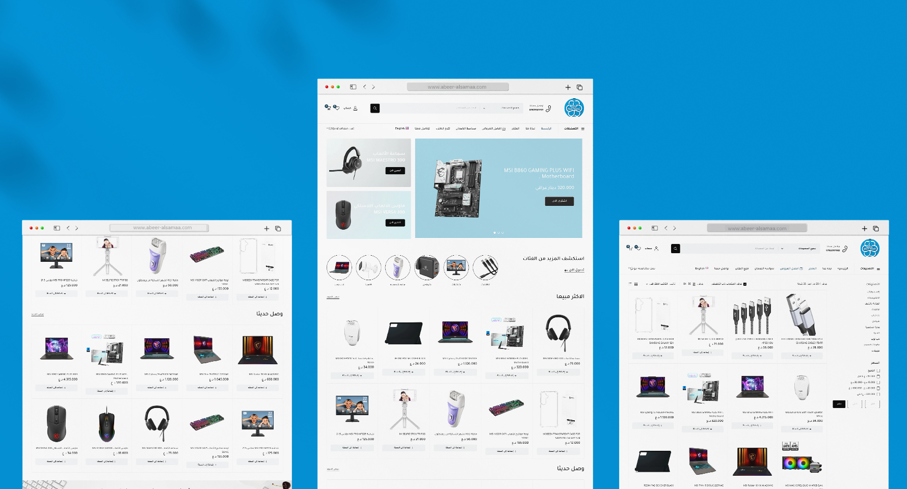 We designed and developed a fully integrated online store for Abeer Al-Samaa, a company specializing in smartphones, electronic devices, electrical appliances, and accessories. The goal was to create a professional digital storefront that presents products clearly, enhances browsing experience, and enables customers to shop effortlessly.