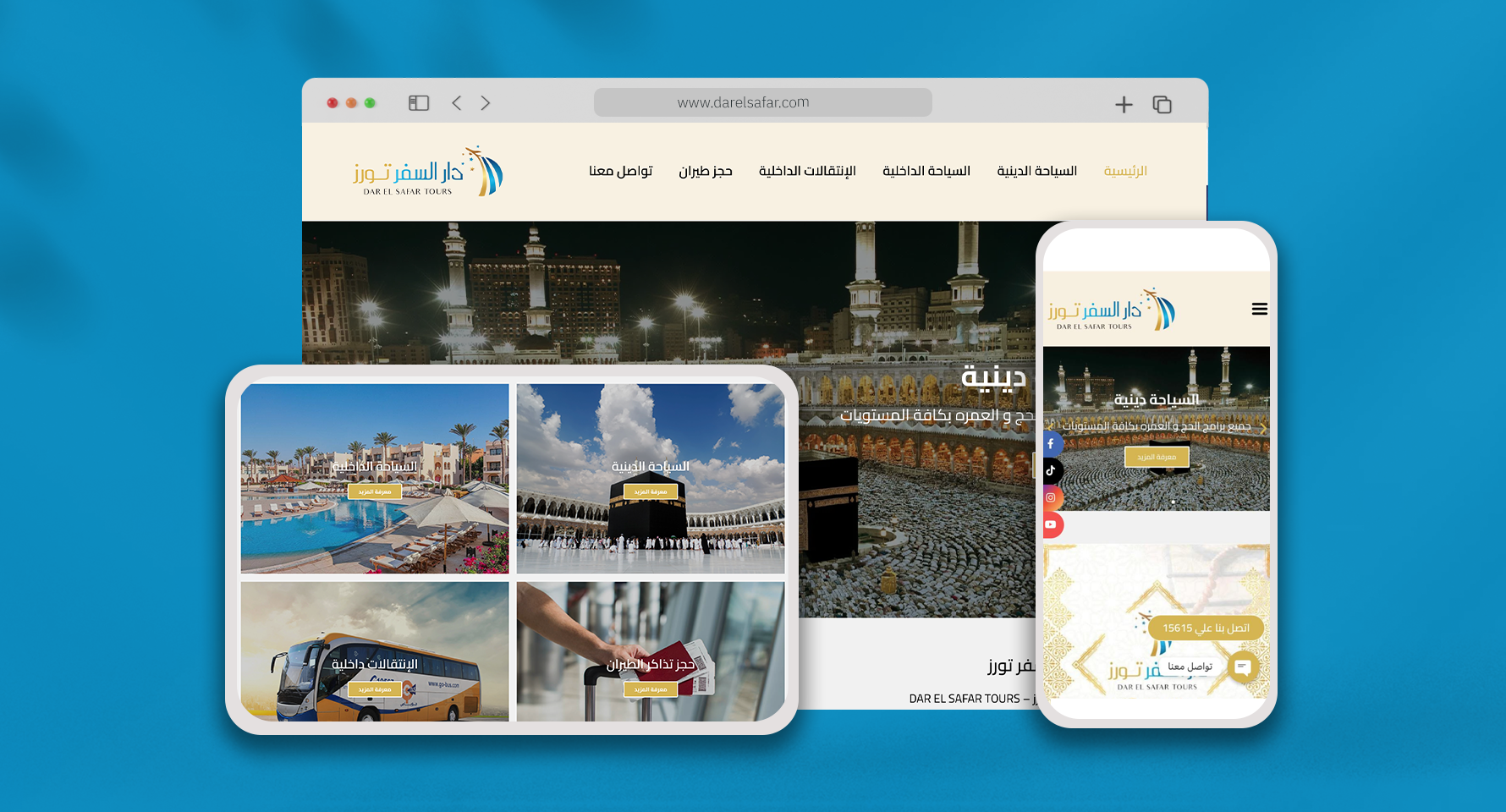 We designed and developed a professional website for Dar El Safar, a travel and tourism company offering a wide range of services including Hajj & Umrah packages, domestic tourism programs, and flight ticket bookings. The goal was to build a modern digital platform that reflects the company’s expertise and makes it easy for customers to explore services and connect with the team.